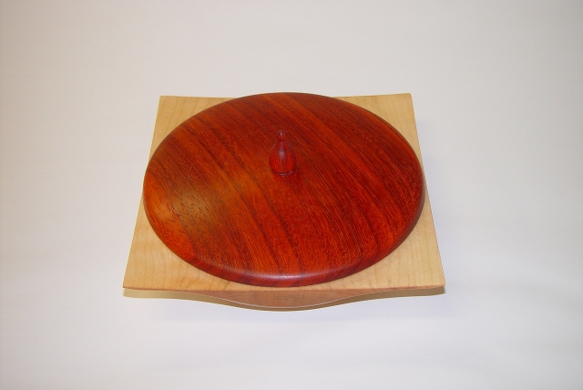 the underside inscription). The bowl is of quilted maple and the lid is from