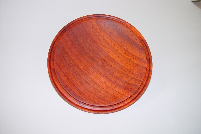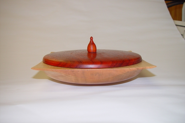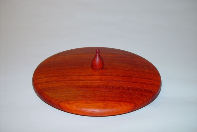 padauk. There's a bead around the bowl opening that meshes with the lid.