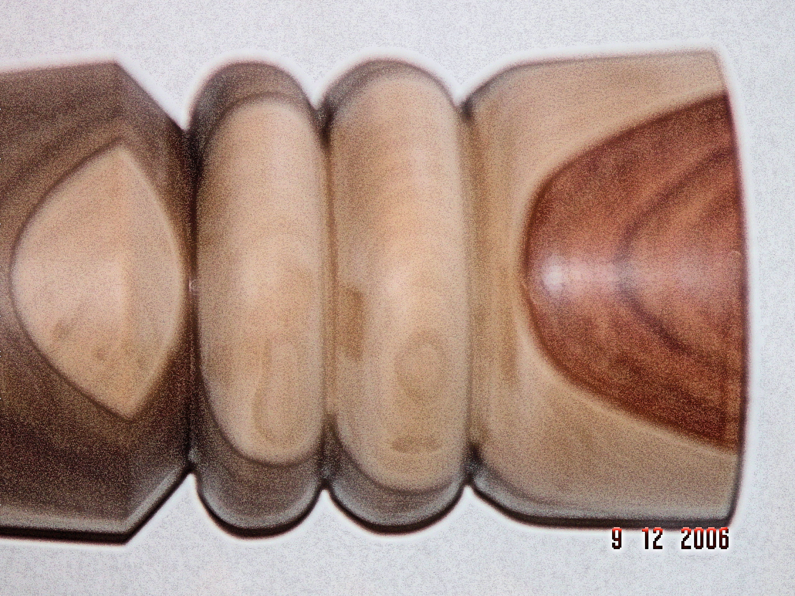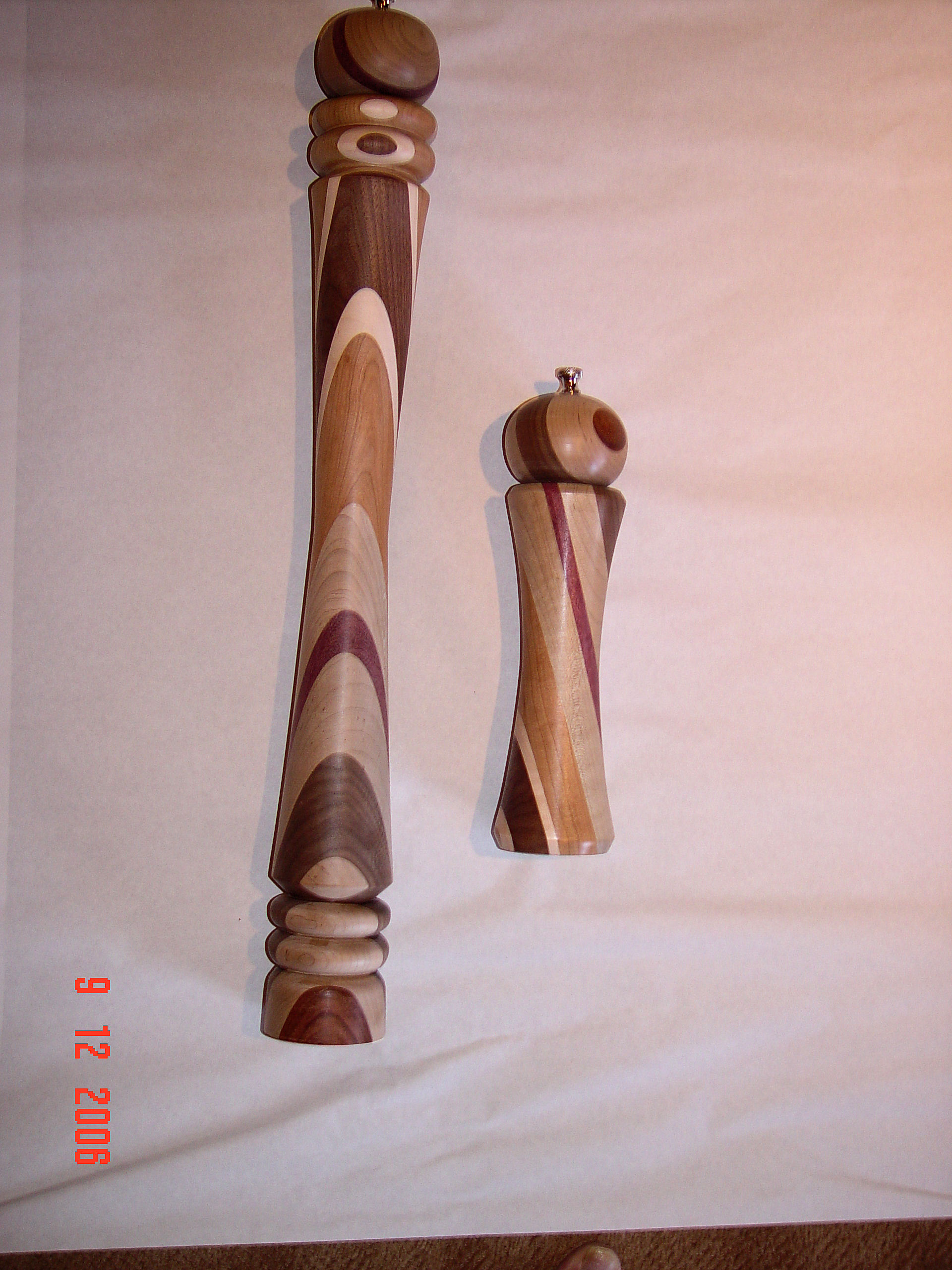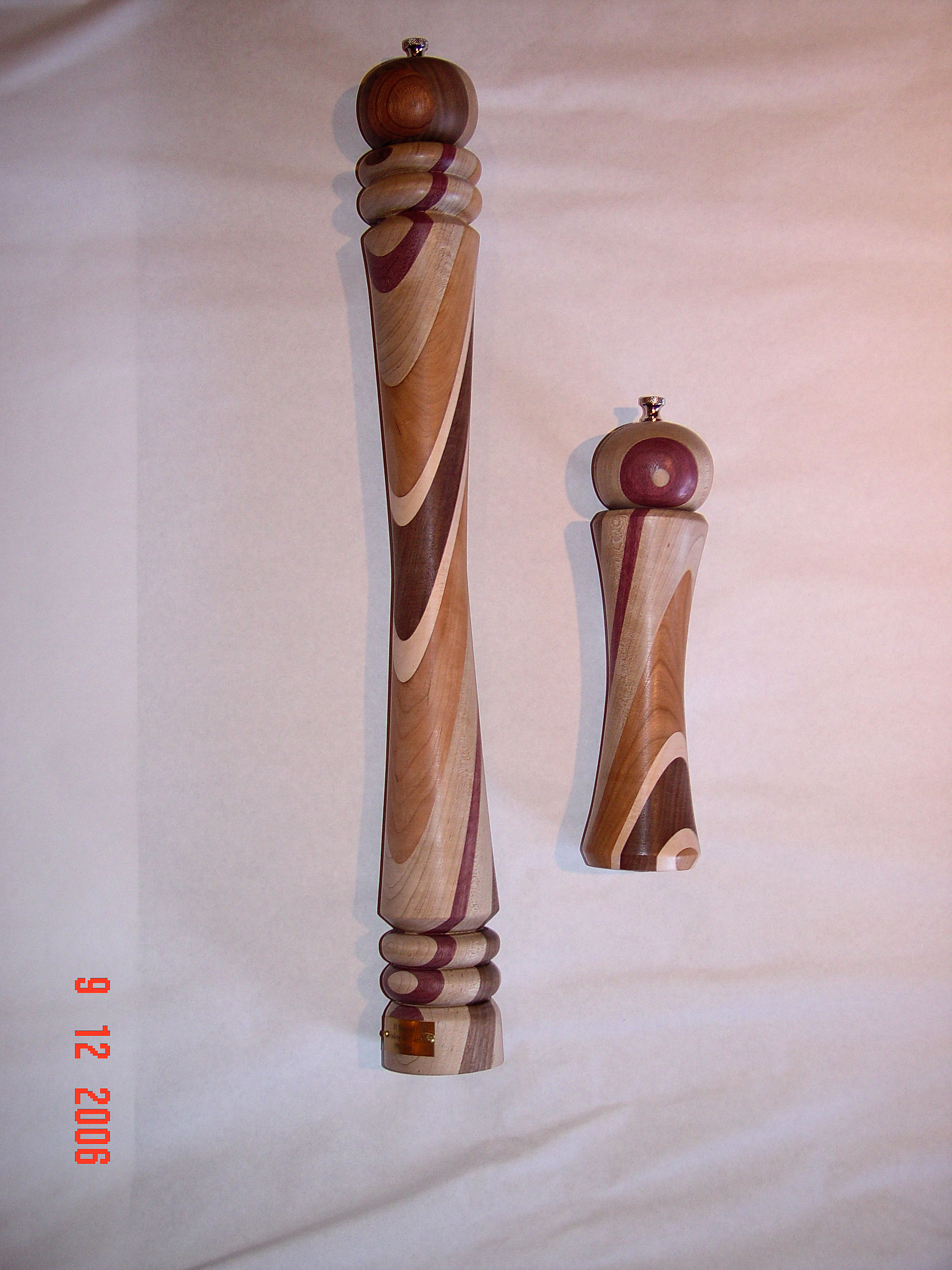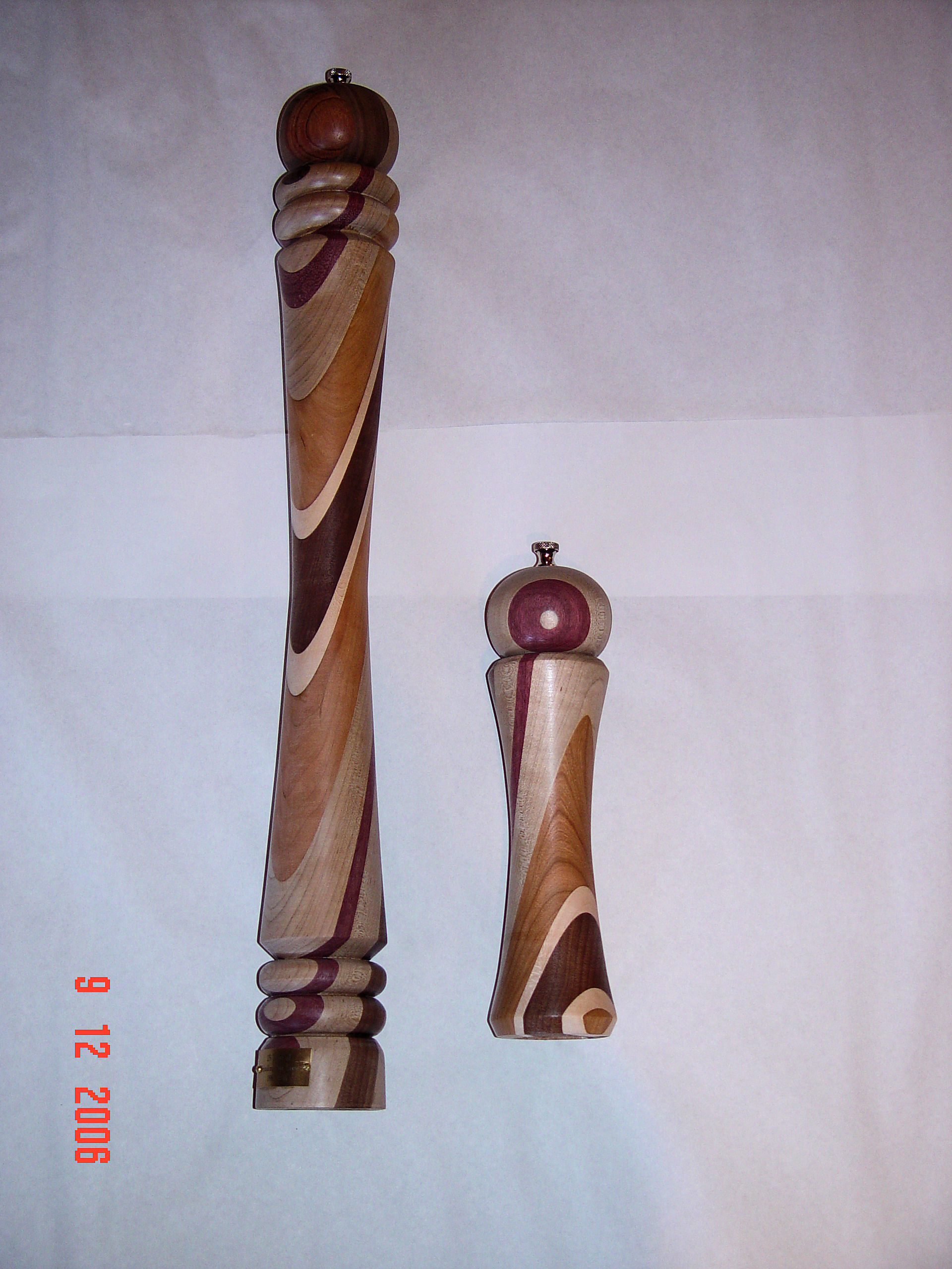 The peppermills were created by laminating different