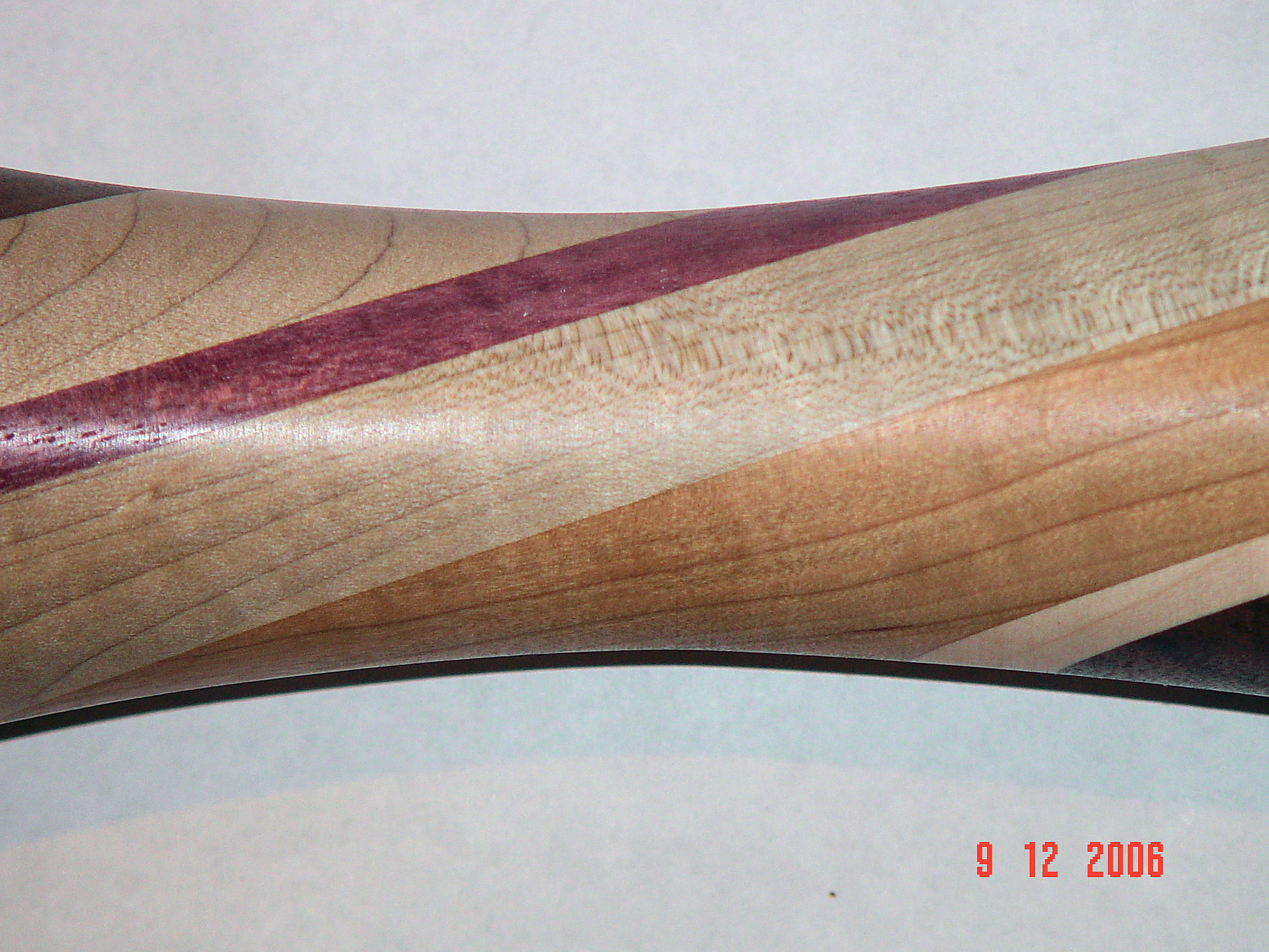 thicknesses of 3" wide walnut, maple, bubinga, cherry and purpleheart. I then