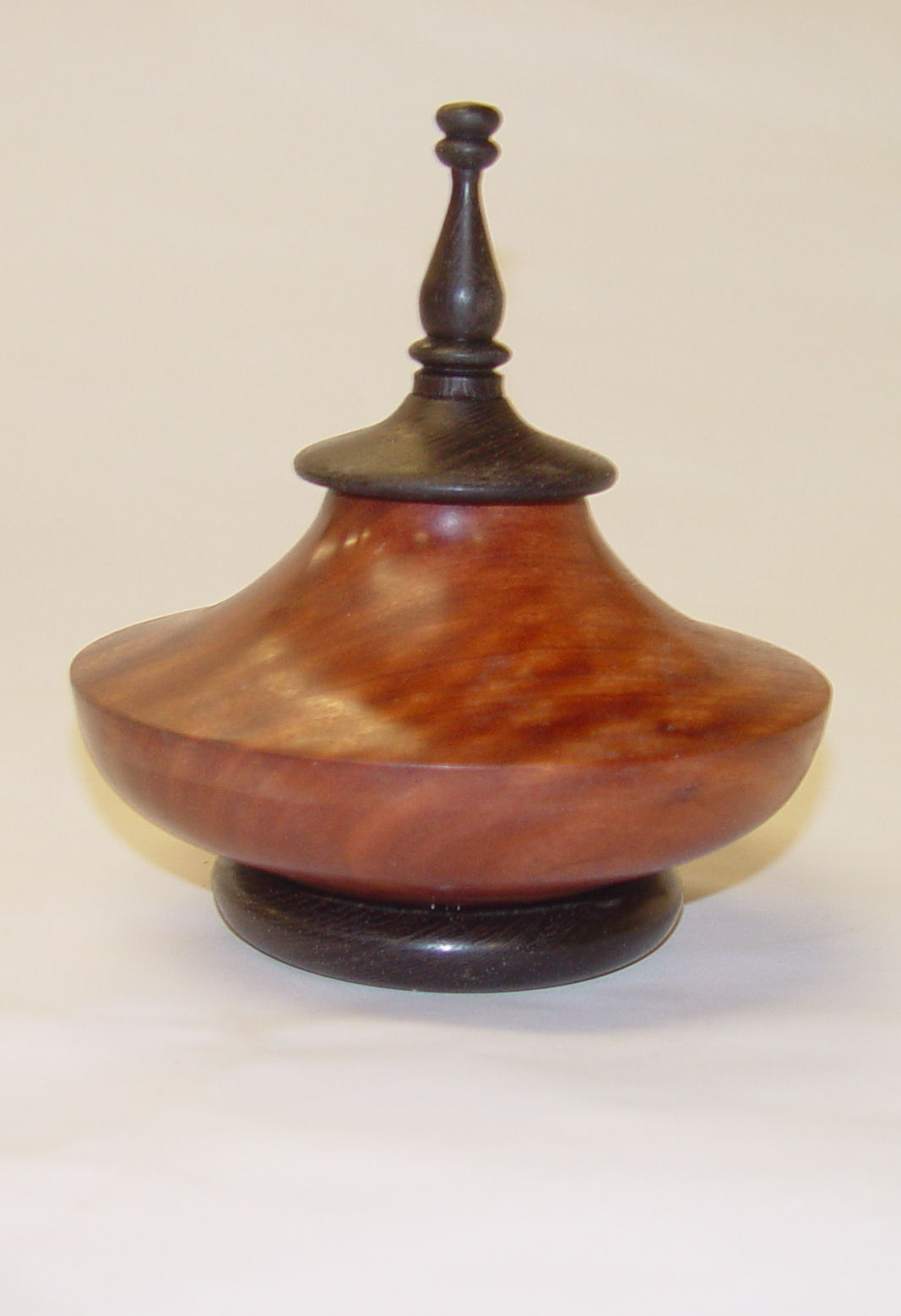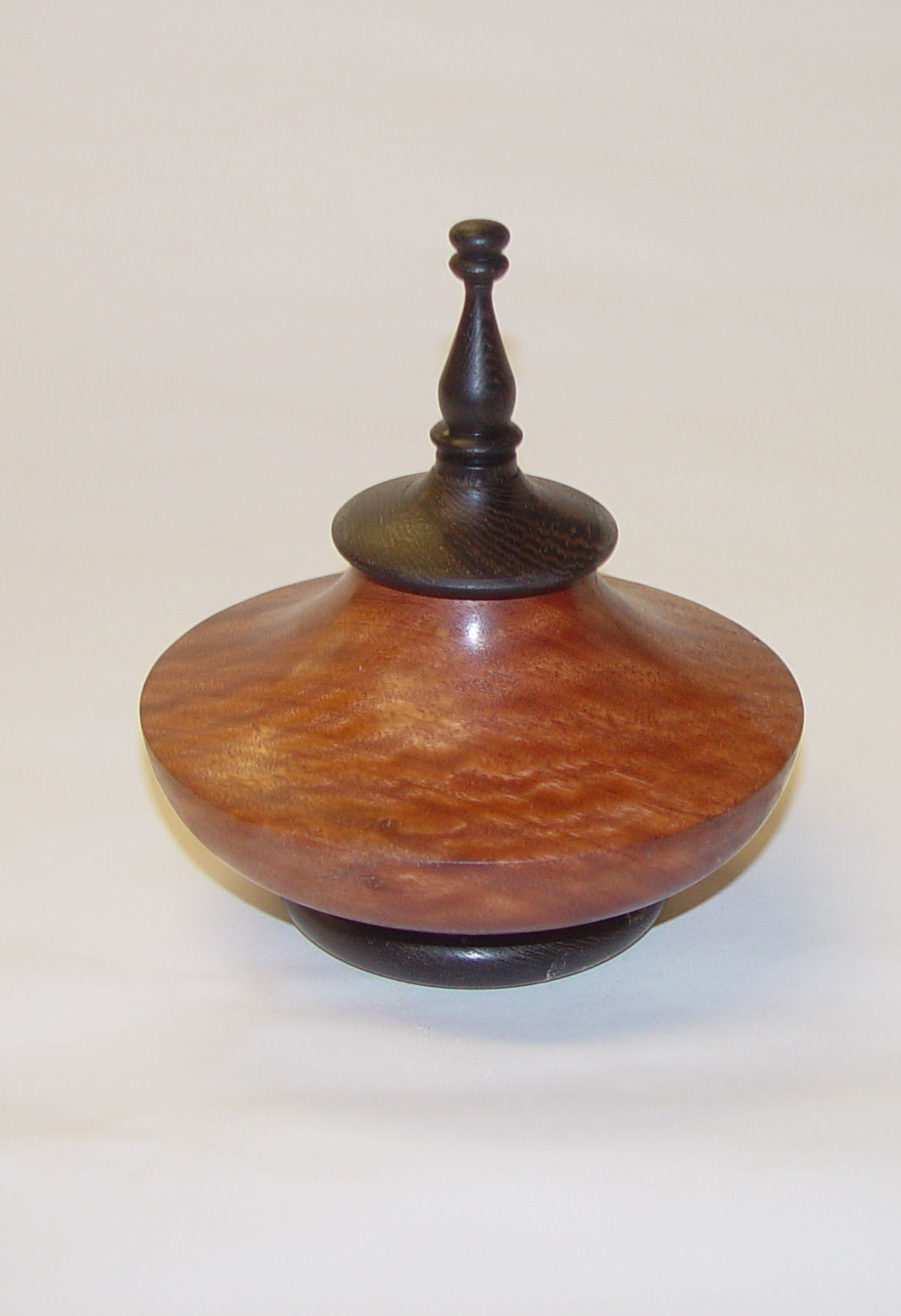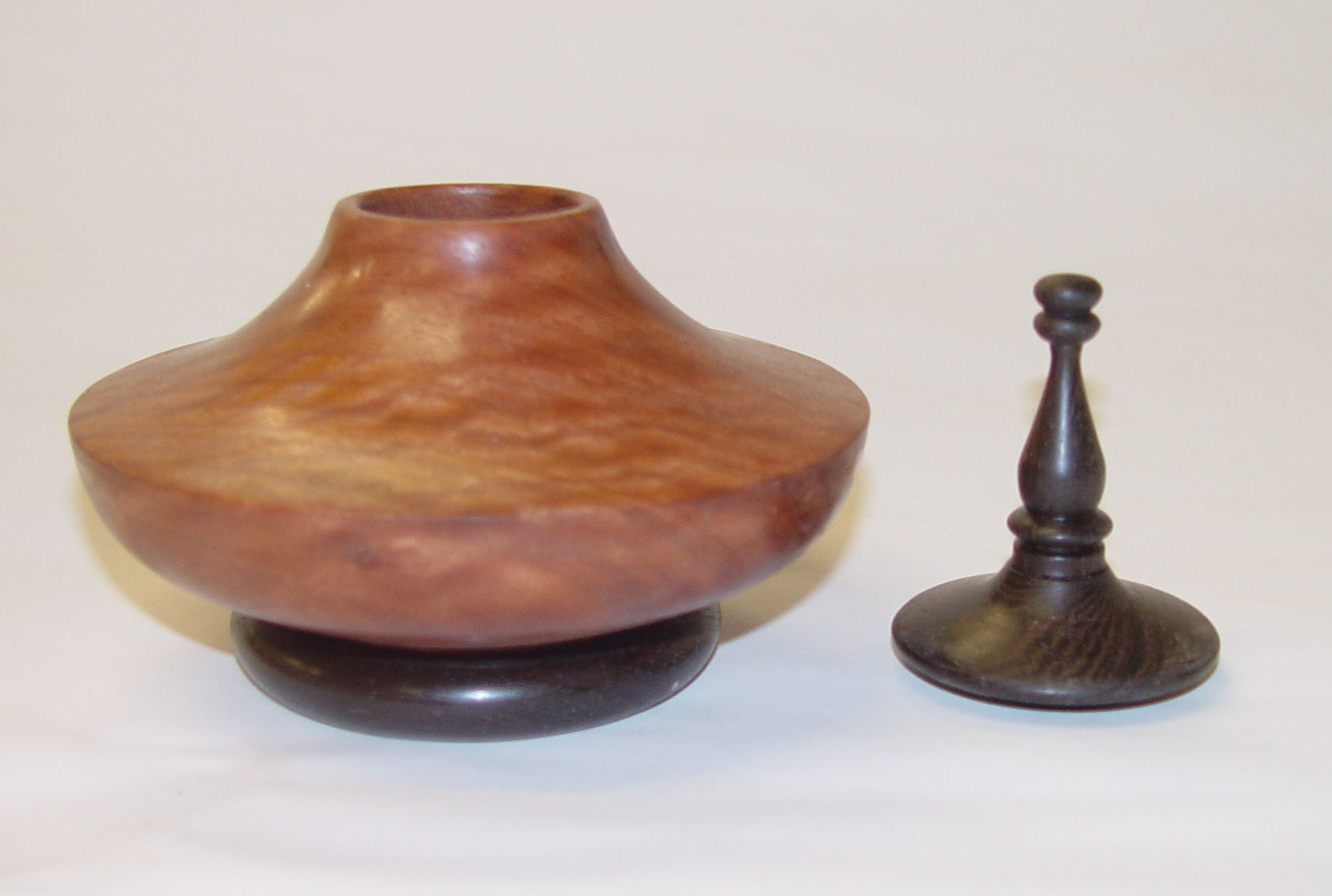 This is an urn made from eucalyptus burl and wenge. It was a birthday present for my wife. Finished with tung oil and paste wax.